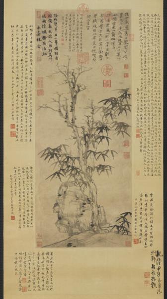 元 倪瓒竹树野石 轴